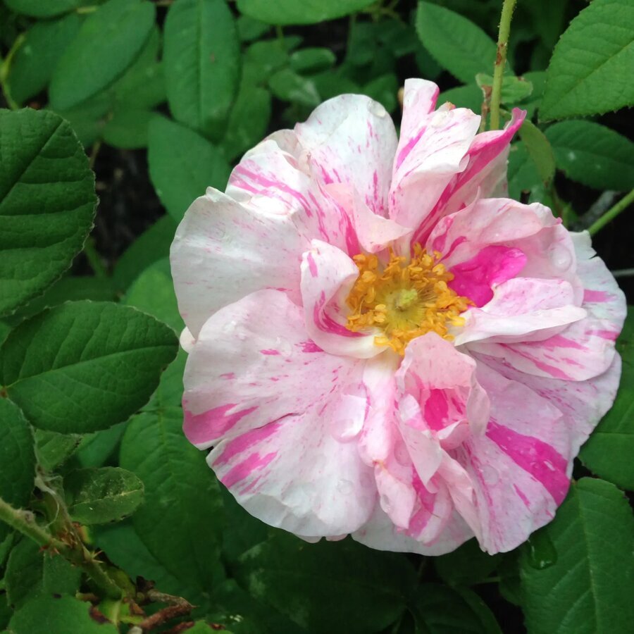 Versicolor nổi bật với cánh hoa hồng đỏ sọc trắng, tạo hiệu ứng vằn vện tự nhiên. Bông có màu sắc độc đáo, khó nhầm lẫn với bất kỳ giống hoa hồng nào khác, mang vẻ đẹp cổ điển và sang trọng.
